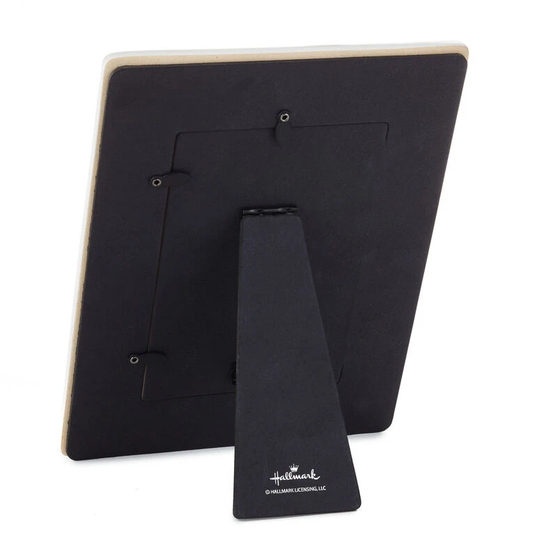 - Ceramic picture frame by Hallmark features a white speckled background with gray caption and double-line border design.