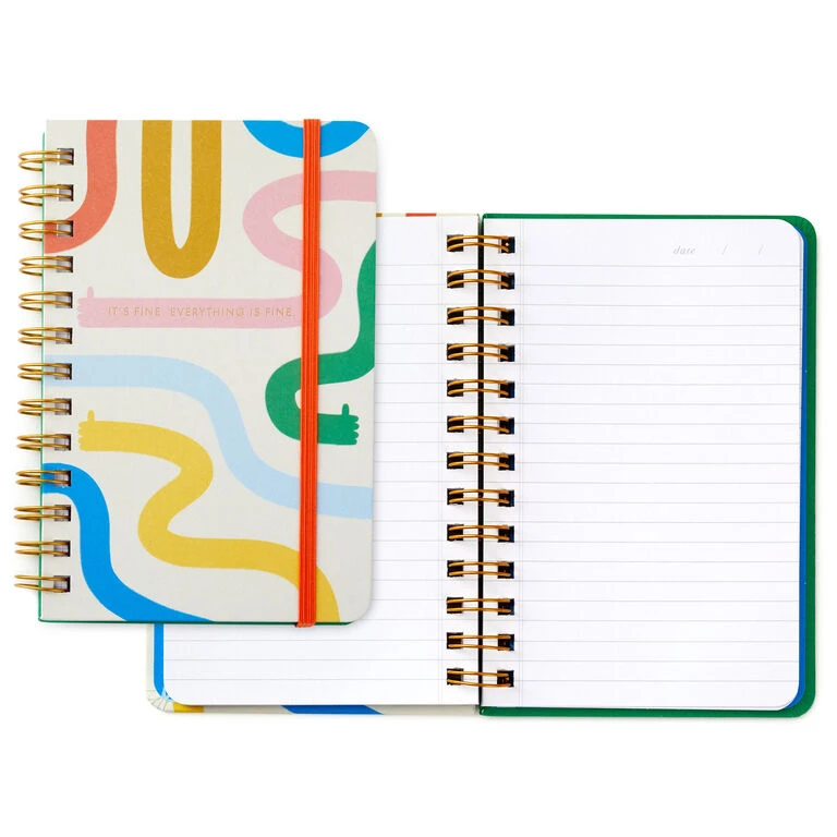 Remind yourself everything is all right when you take time to journal in this fun hardcover notebook that carries an upbeat message of simplicity in gold foil. Abstract arms with thumbs-up designs add whimsy to this wire-bound journal that includes an orange elastic band to mark your place or hold pages closed. Makes a great gift for a teen, college student or aspiring writer.